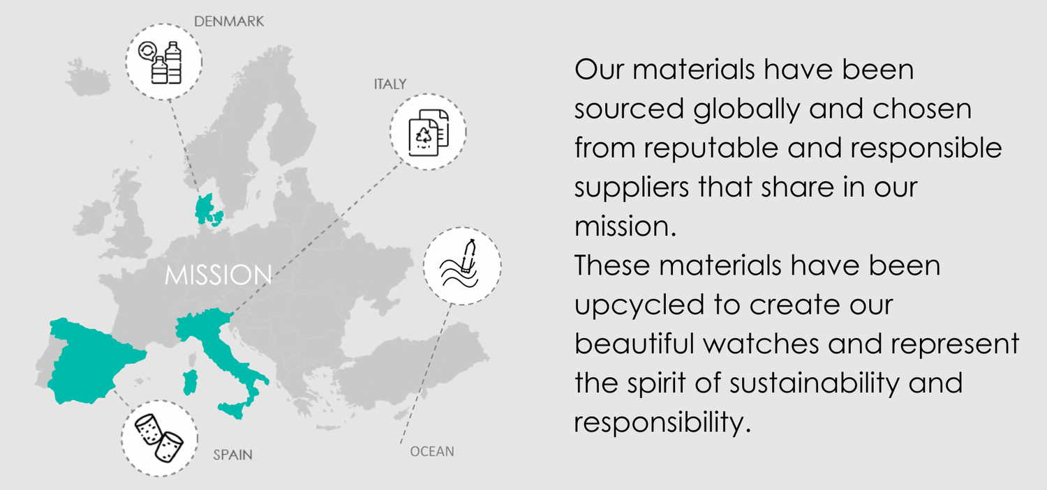 80% of plastic bottles end up in landfills. Jason Hyde creates watch and jewelry made out of recycled plastic from the ocean from Tide Ocean Material.