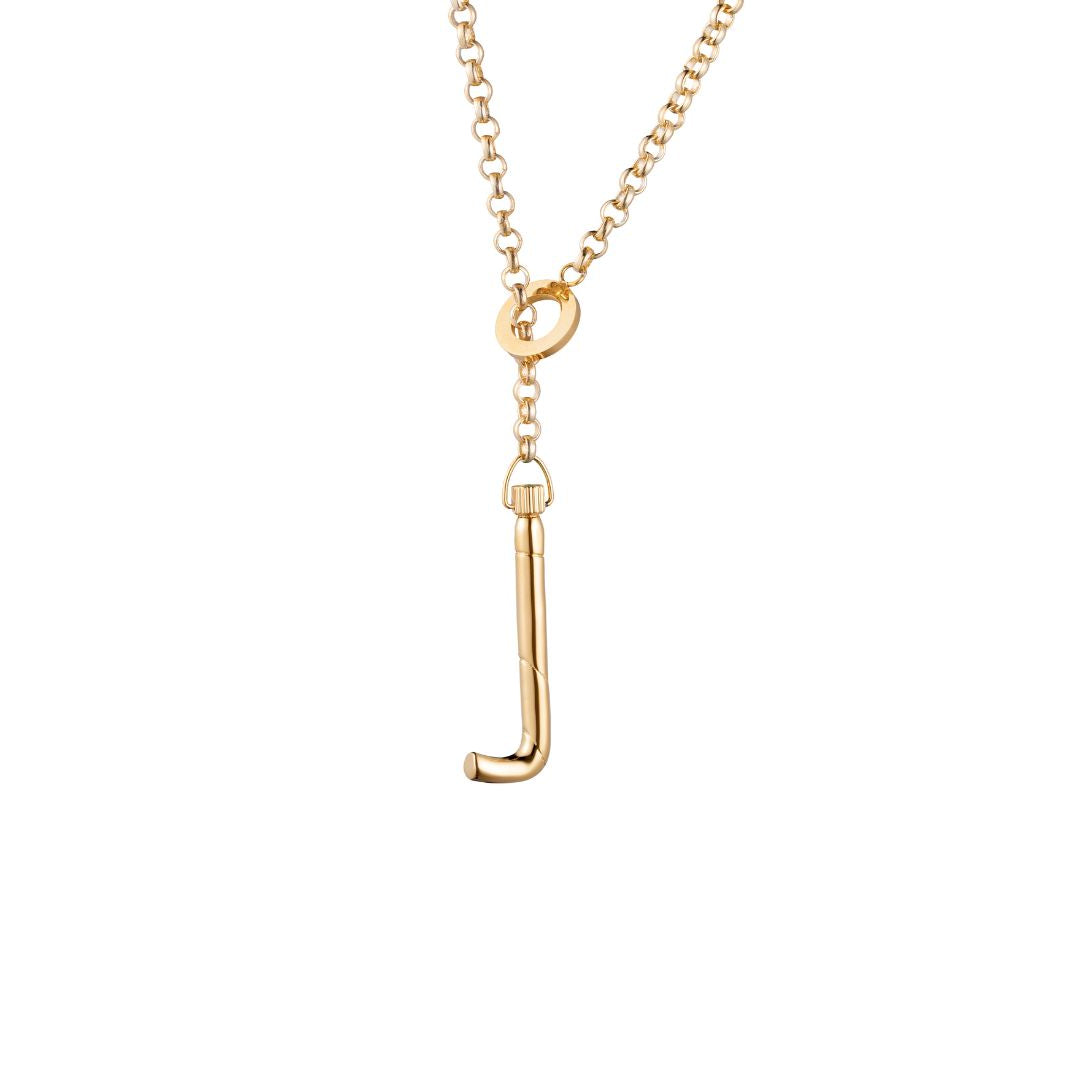 This Jason Hyde Lariat features 925 sterling silver with 18K gold plating and a letter charm personalized with one of the letters A, C, D, E, J, L, M, R, S, or T. Each charm is accented by a turquoise chip made from recycled ocean plastic. The necklace measures 55 cm (21.6 inches) open length, perfect for a custom meaningful accessory.